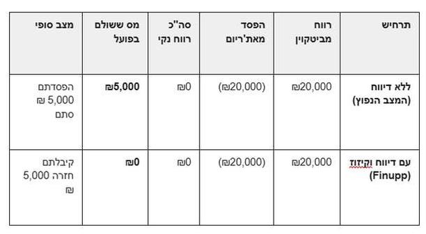 - זהו יתרון עצום: אם הבנק ניכה לכם מס על רווחים במניות, והפסדתם בקריפטו בזירה חיצונית, הגשת הדוח תאפשר לכם לקבל חזרה את המס שהבנק לקח.