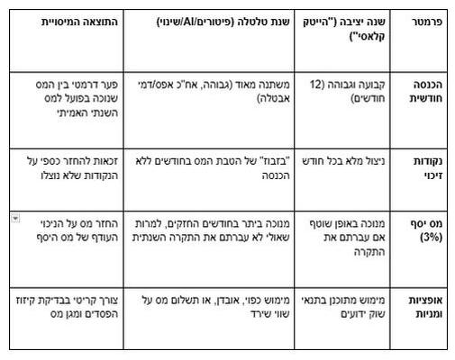 - שכר גבוה: עובדי הייטק נמצאים לרוב במדרגות המס הגבוהות (35%, 47% ולעיתים גם מס יסף של 3%).